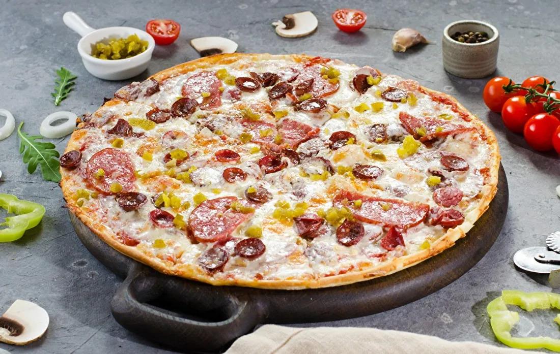 халапеньо, копченая колбаса, охотничьи колбаски, соус сальса